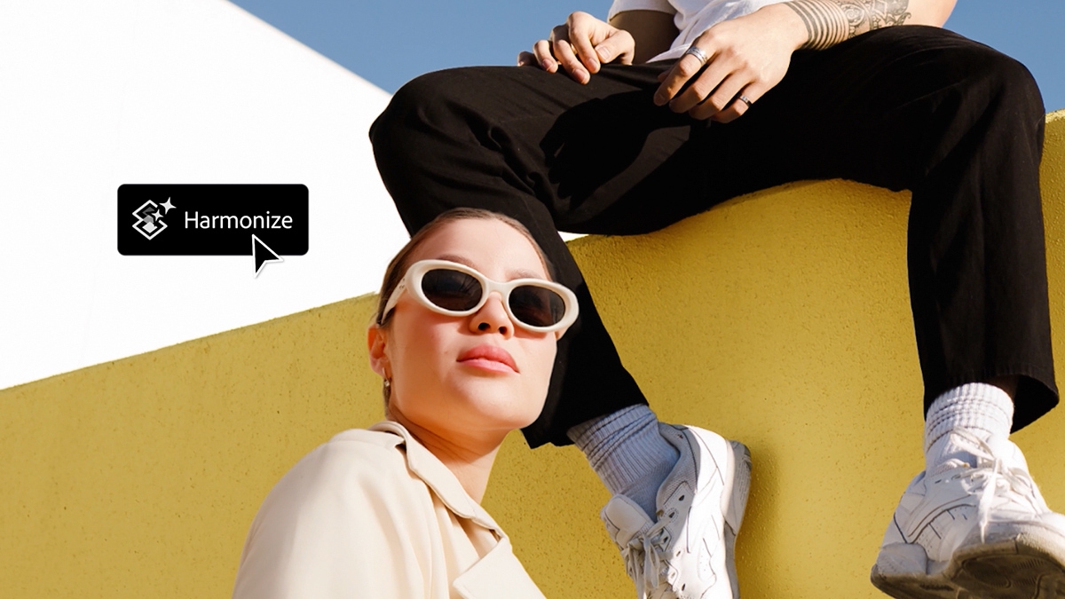 出力サイズには2倍または4倍のスケールを選べます。最大サイズは「Firefly Upscaler」が6,144×6,144px、「Topaz Gigapixel」が最大56メガピクセル、「Topaz Bloom」が最大9メガピクセルです。さらに「Topaz Gigapixel」では「顔の復元」にチェックを入れたり、「Topaz Bloom」では生成レベルを調整したりもできます。AIで簡単に自然な合成ができる調和機能「調和」もベータ版から正式に導入された新機能です。画像のリアルな合成をサポートする機能で、AIによる自動処理で合成プロセスの大部分を自動化できます。色や照明や影が自動的に調整されるため、違和感なく自然に合成を仕上げることが可能です。