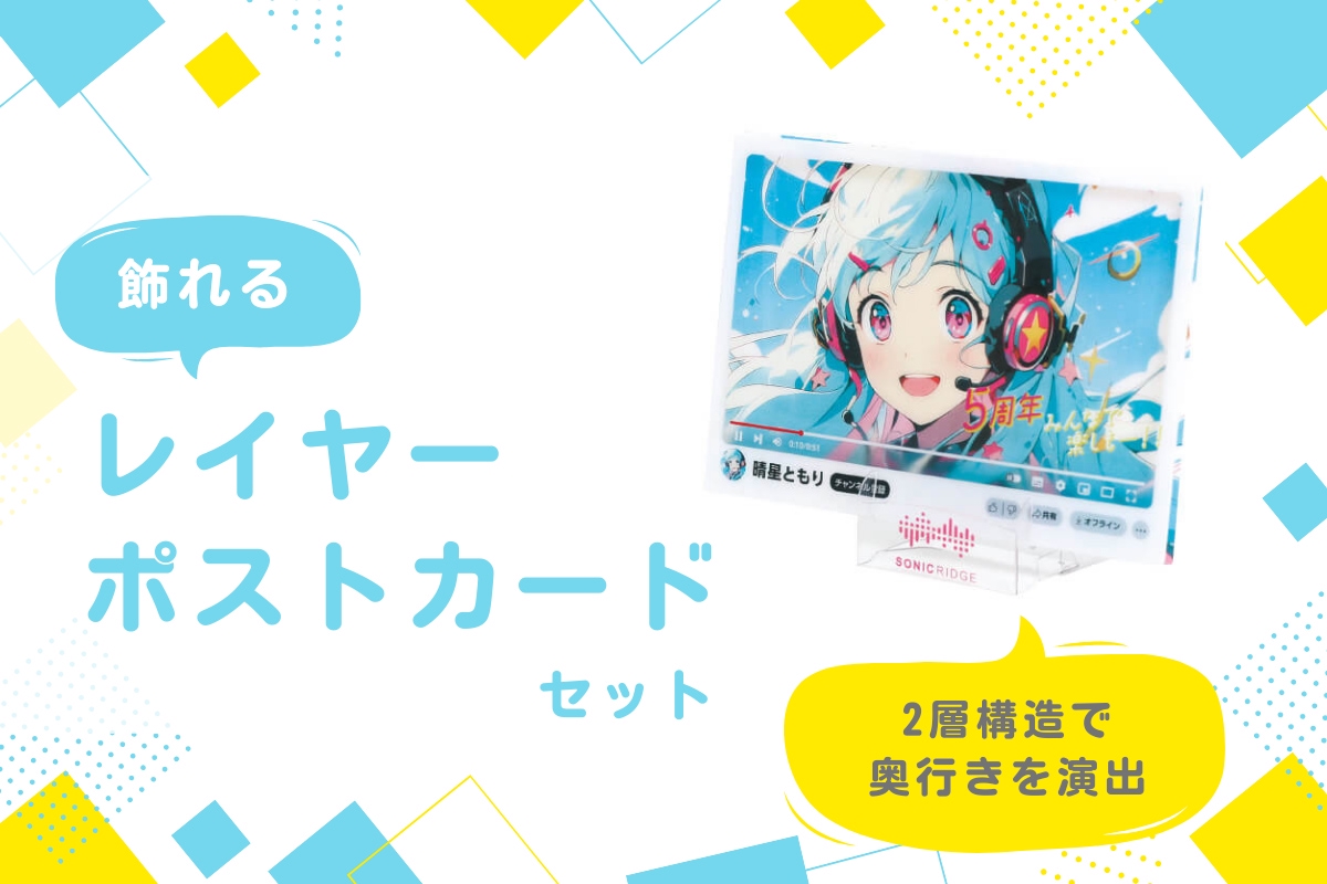 大同至高株式会社は、「飾れるレイヤーポストカードセット」の取り扱いを開始しました。最小50個からの注文に対応している印刷商品です。クリアイラストカードを前後に重ねる2層構造により、立体感を演出しながらスタンドにポストカードを飾ることができます。【目次】小ロット注文ではUVインクジェット印刷を使用大同至高は、オリジナルグッズ/販促品/小売り商品のOEM・ODMができる印刷会社です。近年では「推し活グッズ」にも力を入れており、受注件数1,700件以上、累計12億円以上の売り上げ実績があります。今回の「飾れるレイヤーポストカードセット」も「推し活グッズ」やノベルティとして使いやすい印刷商品で、同社の創業90年の節目の年に新商品として発表されました。