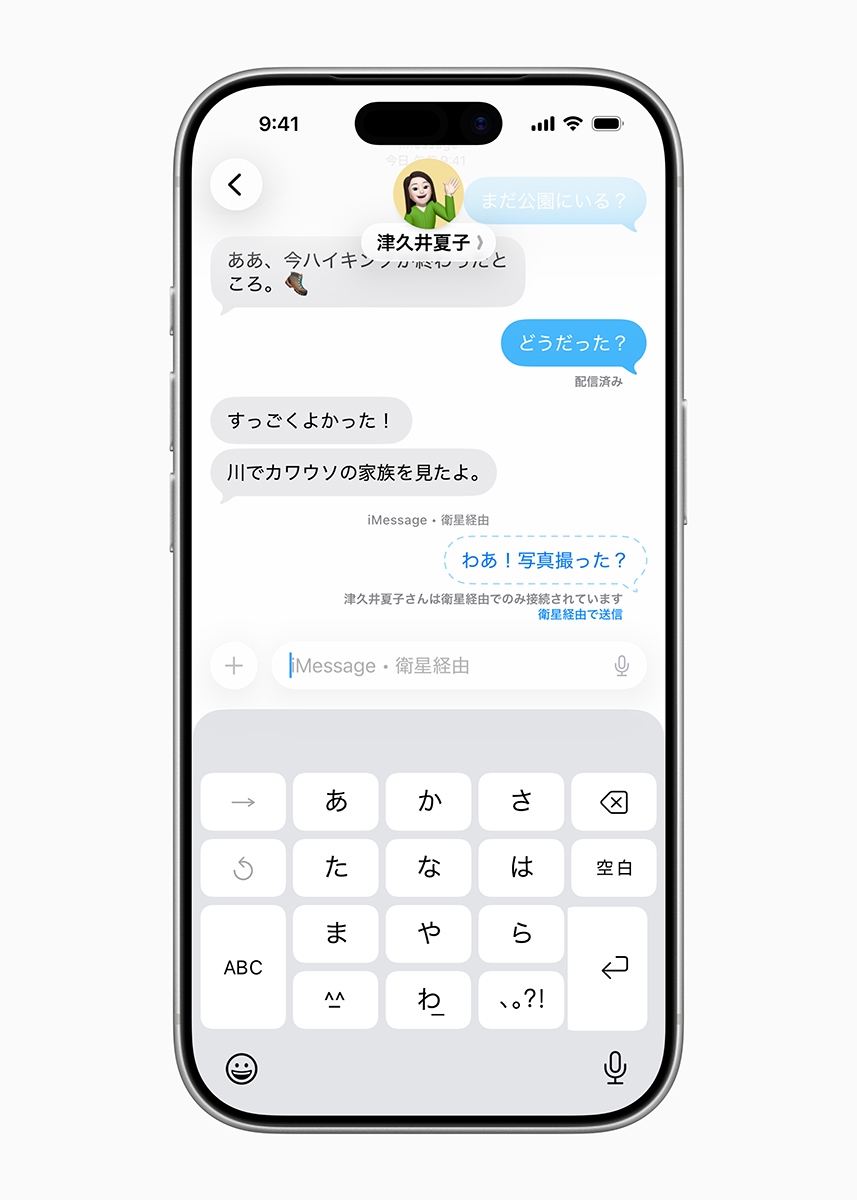 Appleによる衛星経由でのメッセージ利用が、日本国内でもできるようになりました。iOS 18以降を搭載したiPhone 14以降の全てのモデルと、watchOS 26以降を搭載したApple Watch Ultra 3に対応します。【目次】圏外でも家族や友人と “つながる” ための機能携帯電話通信やWi-Fiの圏外における衛星経由での接続は、これまではあくまでも緊急事態のみでの使用を想定したものでした。今回、日本でも既に提供されている緊急SOSや「探す」機能での利用に加え、新たに「圏外にいる時でも家族や友人とつながり続けるために役立つ機能」としての意味が加わります。ユーザーはiMessageとSMSでテキスト/絵文字/Tapbackの送受信が可能です。ユーザーが圏外でメッセージを送ろうとすると、最も近い衛星に接続するように促されます。衛星経由で送信されるiMessageはプライバシーにも配慮されており、エンドツーエンドで暗号化される仕組みであるため、送信者と受信者のほかには誰にも読まれる心配がありません。