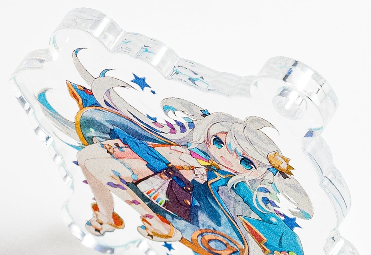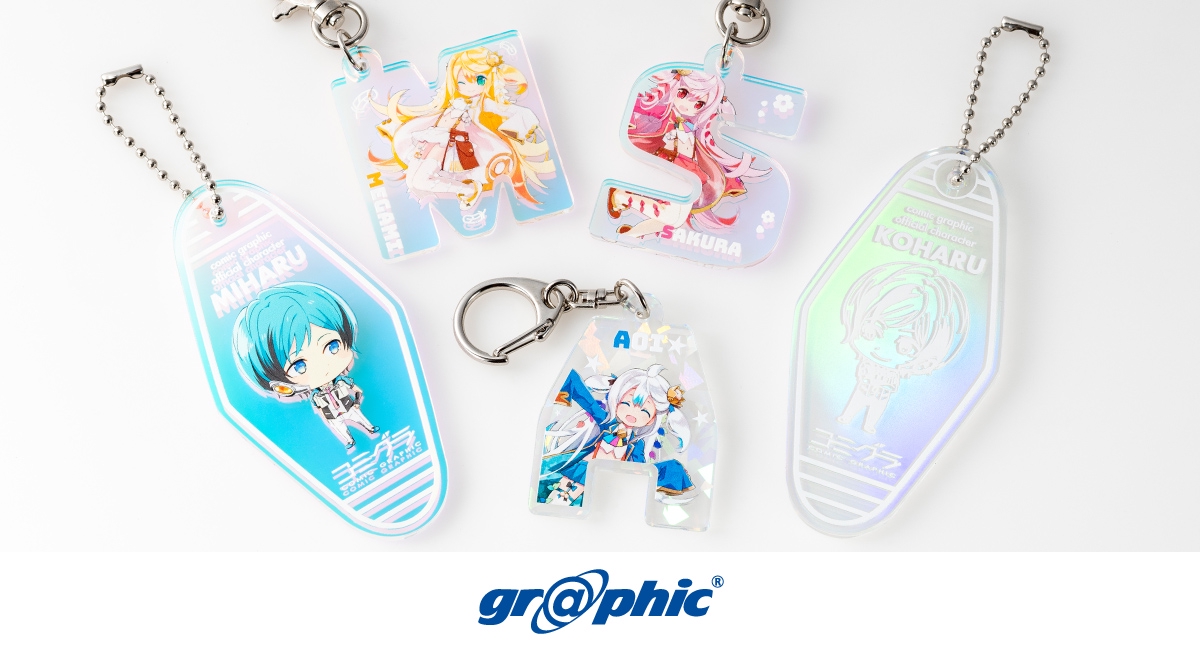 オプションで注文できる専用台紙はフルカラー印刷にも対応* * * * * * * * * *本商品は、キャラクターやアニメを題材とした販売グッズ、イベントでの販促品はもちろん、個人の推し活グッズとしても便利なアイテムです。キラキラと偏光して輝くため遠くからでも目立ち、オシャレなキーホルダーとしてインパクトがあります。納期は10日となっており、2025年12月現在の参考価格として30×30mm以内のサイズで200個注文した場合の1個あたりの値段は212.2円(税込)です。株式会社グラフィックURL:https://www.graphic.jp/