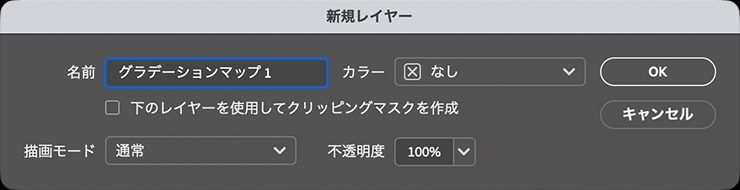 図11次に、レイヤーメニュー→“新規調整レイヤー”→“グラデーションマップ...”を選択。「新規レイヤー」ダイアログが表示されるので、そのまま[OK]をクリックする(図12)。
