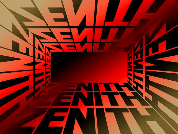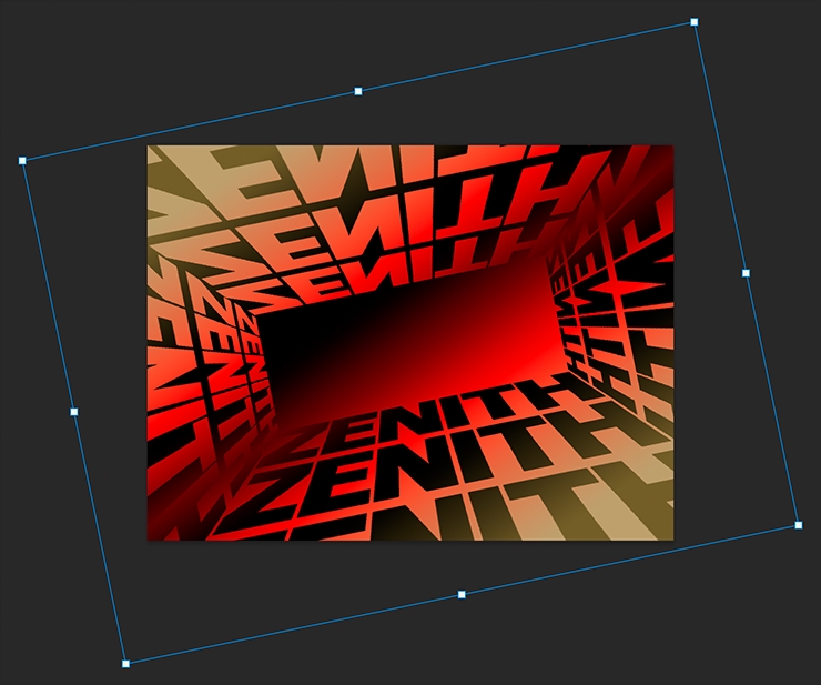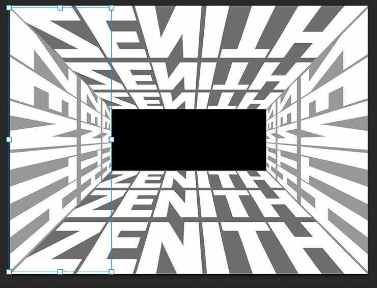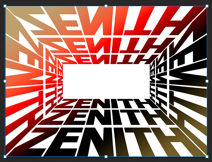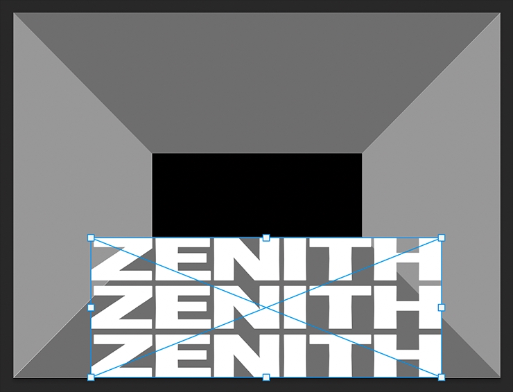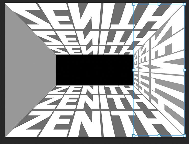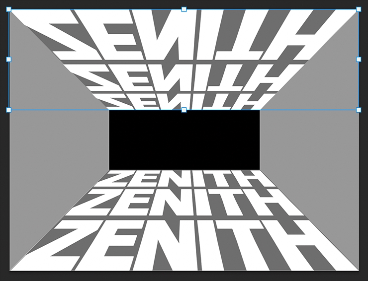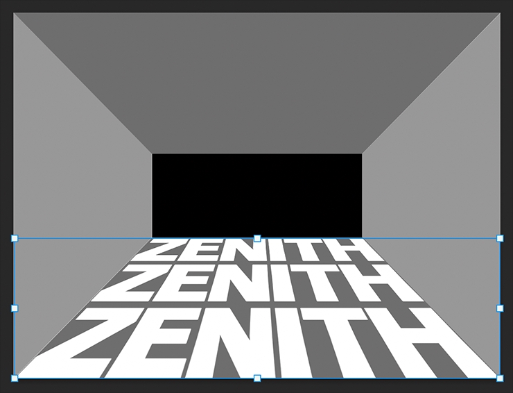 図10Photoshopで文字を変形し奥行きを表現: 2.元となる文字を配置して変形する文字をパースに合わせて変形していく。まず、横書き文字ツールで最前面に元になる文字を入力し(ここでは「ZENITH」を3行入力した)、文字パネルでフォントやフォントサイズなどを設定(図11)。