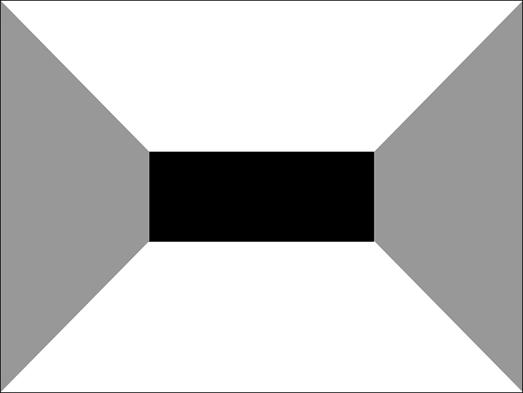 図7同様の手順で、黒い長方形の右と上下に接するよう台形を作成して配置する(図8)(図9)(図10)。