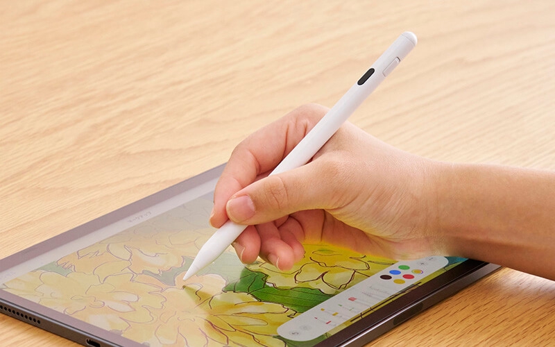 本製品は「純正のApple Pencilに近い描き心地」と紹介されており、細いペン先を生かして繊細なタッチでの描写ができます。図面を引いたりイラストを描いたりする作業にも活用しやすいモデルです。ペン先は、各種のApple Pencil(第1世代/第2世代/USB-C/Pro)との交換も可能です。製品には交換用のペン先2個と、充電用のUSB Type-Cケーブルが同梱されています。