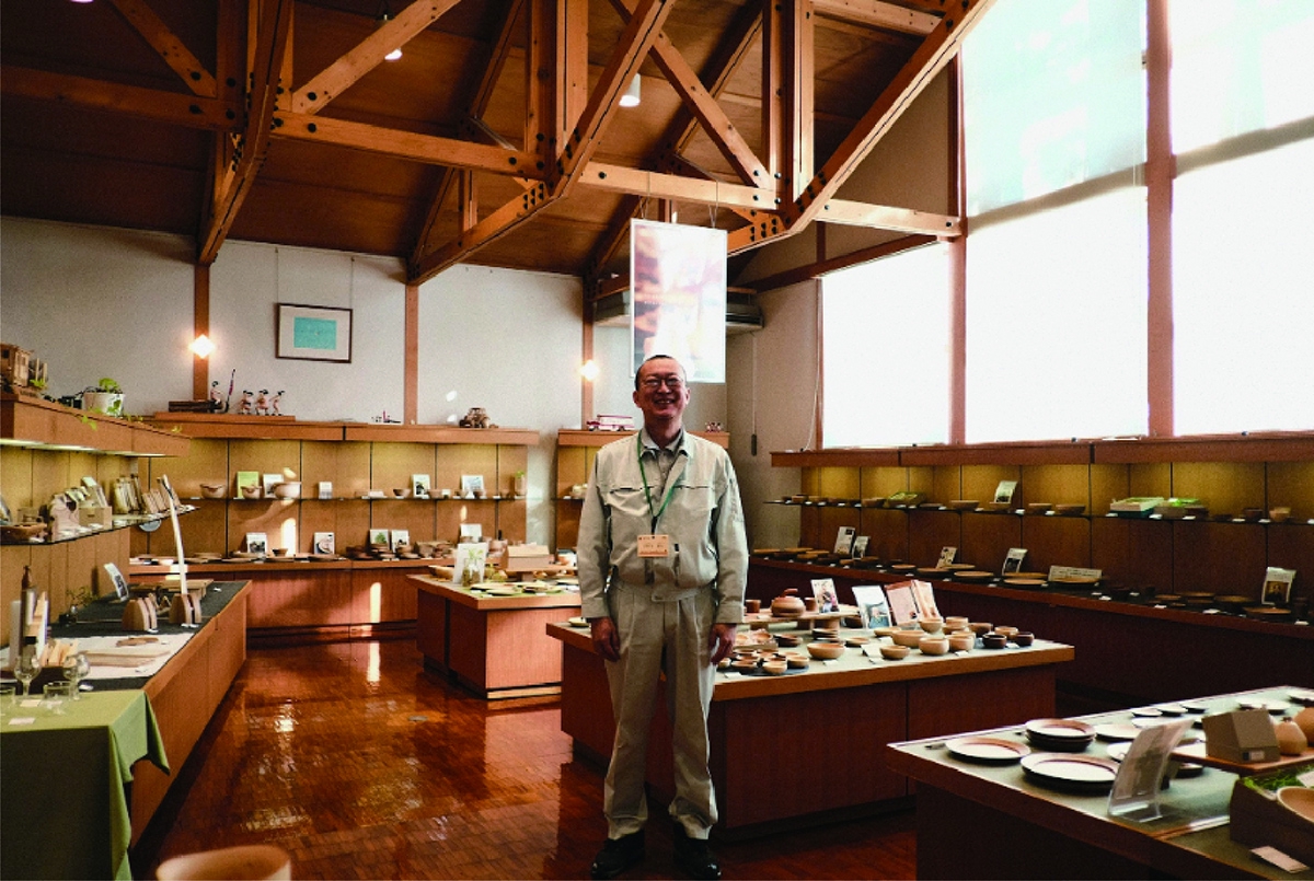 西山佳孝氏(左)と大里みずき氏(右)2023年でフィーチャーされた施設も再び紹介展示のイントロダクションでは、2023年の展示を振り返りつつ「オケクラフトセンター・森林工芸館」などが再び紹介されています。「オケクラフトセンター・森林工芸館」は、草木染めやガラスなどの地域で作られた製品を展示販売し、ガラス越しに研修や生産が行われている工房の様子も見ることができる施設です。