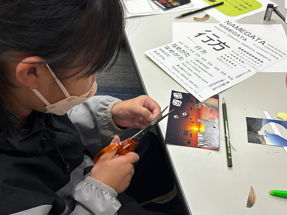 8月の小学生向けワークショップは、「もじでつくろう 行方のポストカード」と題して「いきいきキャンプ2025」内で開催されました。4・5・6年生の参加者たちが「フォントとは何か」を学習し、市の写真に文字を組み合わせてポストカードを制作して、最後に候補書体への模擬投票が実施されています。