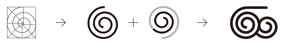 このロゴでは、クリエイティブなスパイラルを巻き起こしながら前進するイメージがシンボル化されています。ベースとなっているのは、大学の徽章の原型であるイオニアスパイラルから抽出した螺旋で構成されている「6」と「0」です。渦巻きによって「未知」や「新たな才能」のイメージを表現しつつ、線を伸ばす動きを加えて「前進」を強く感じさせる形に仕上げられています。