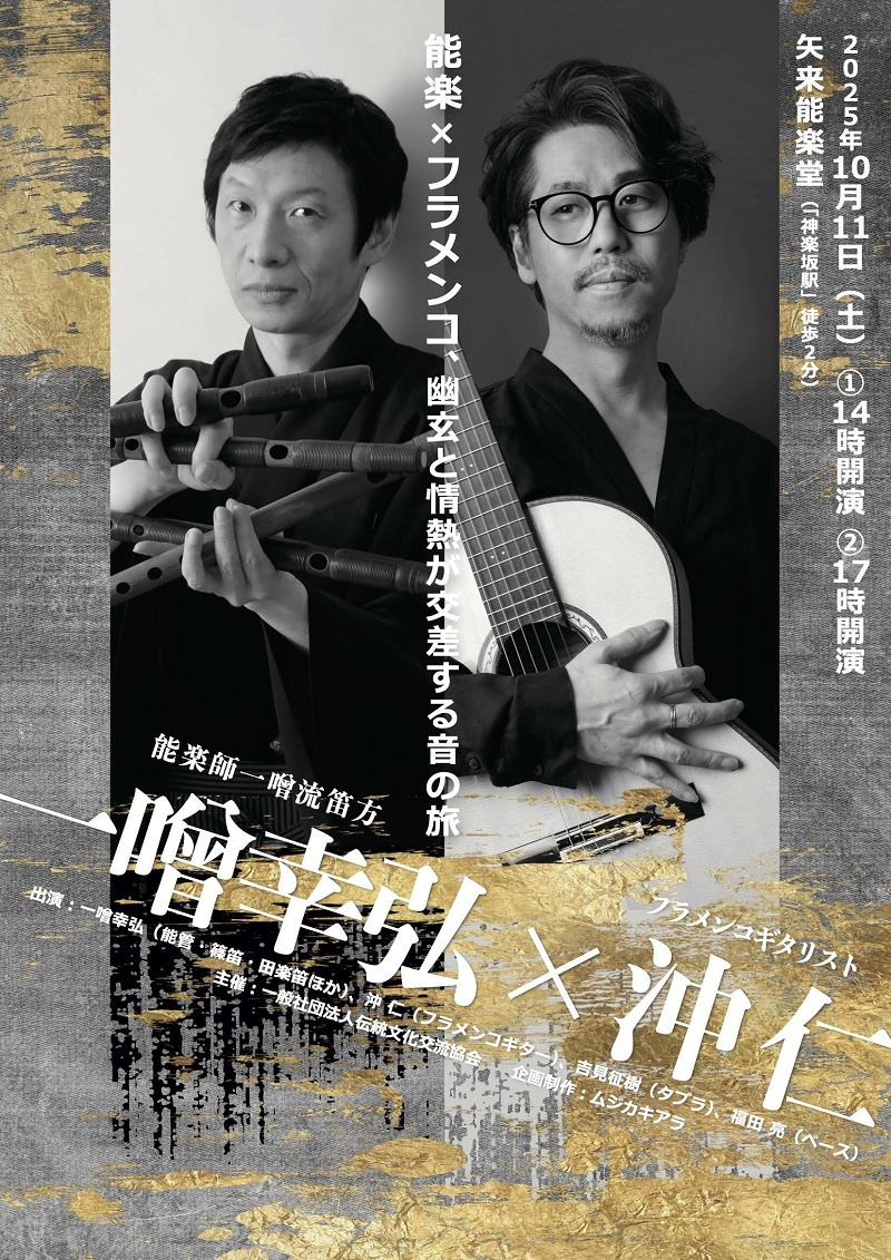 能楽笛の一噌幸弘とフラメンコギターの沖仁がコラボ 『能楽 × フラメンコ、幽玄と情熱が交差する音の旅』の特別予告動画が公開